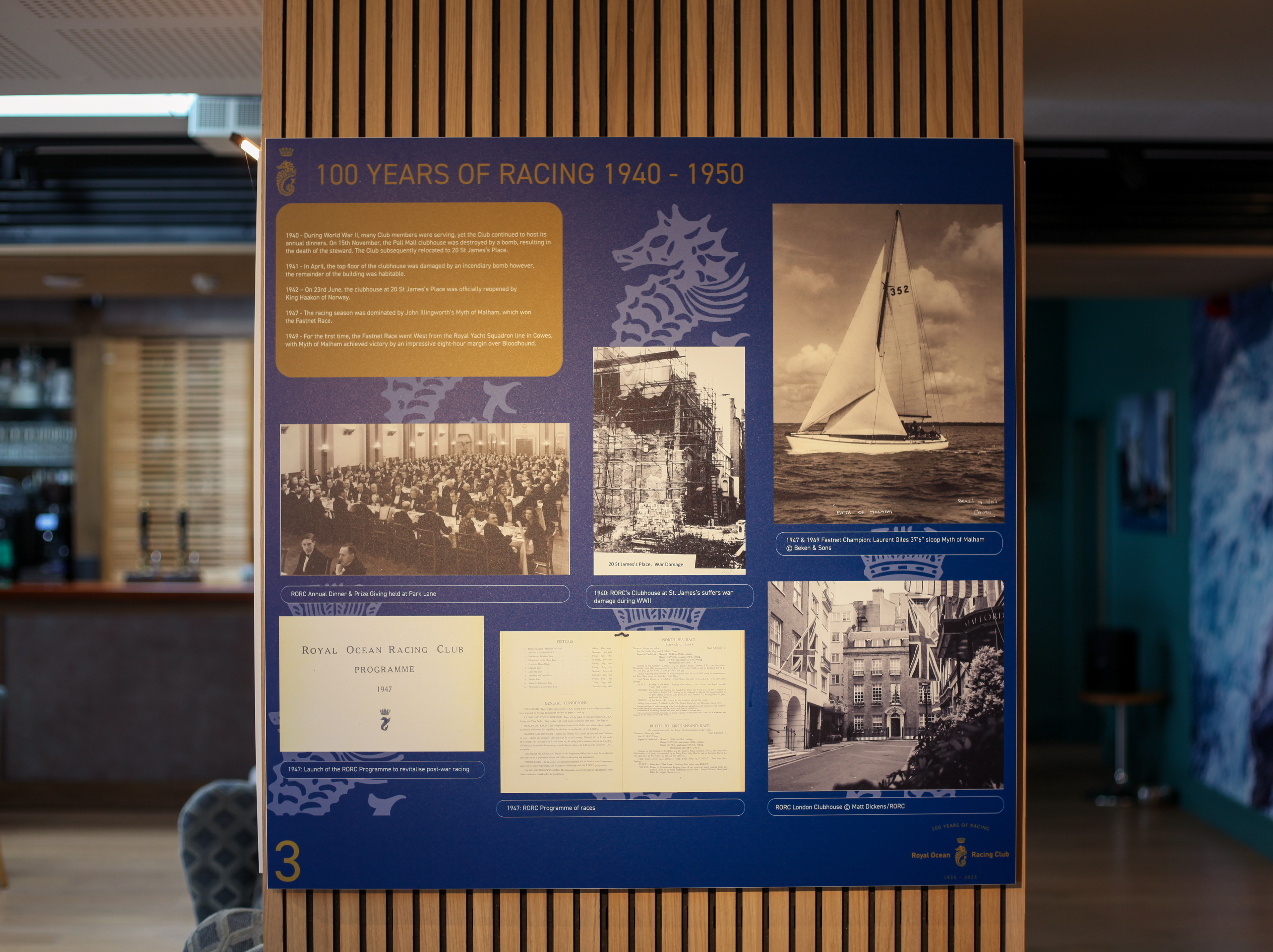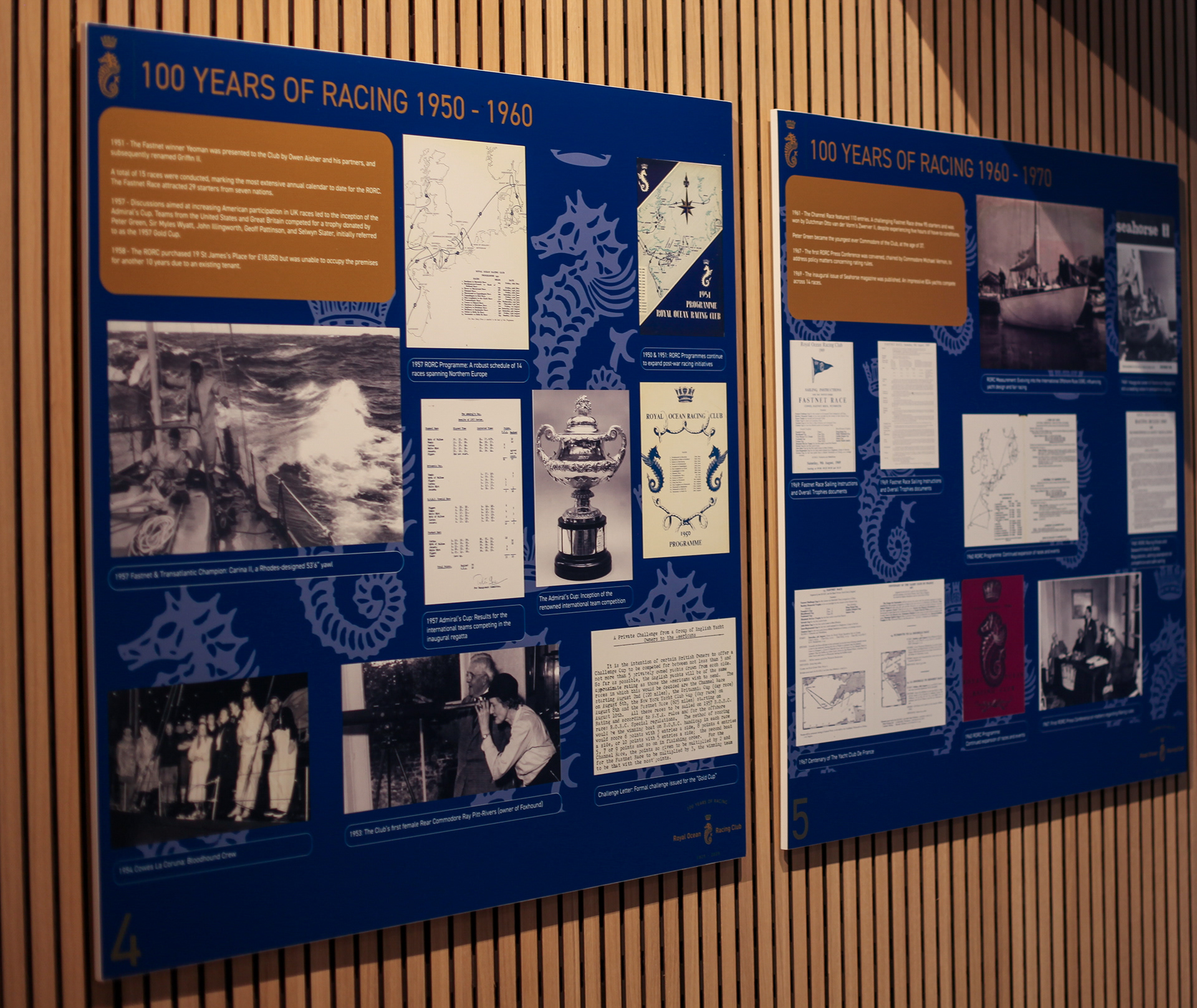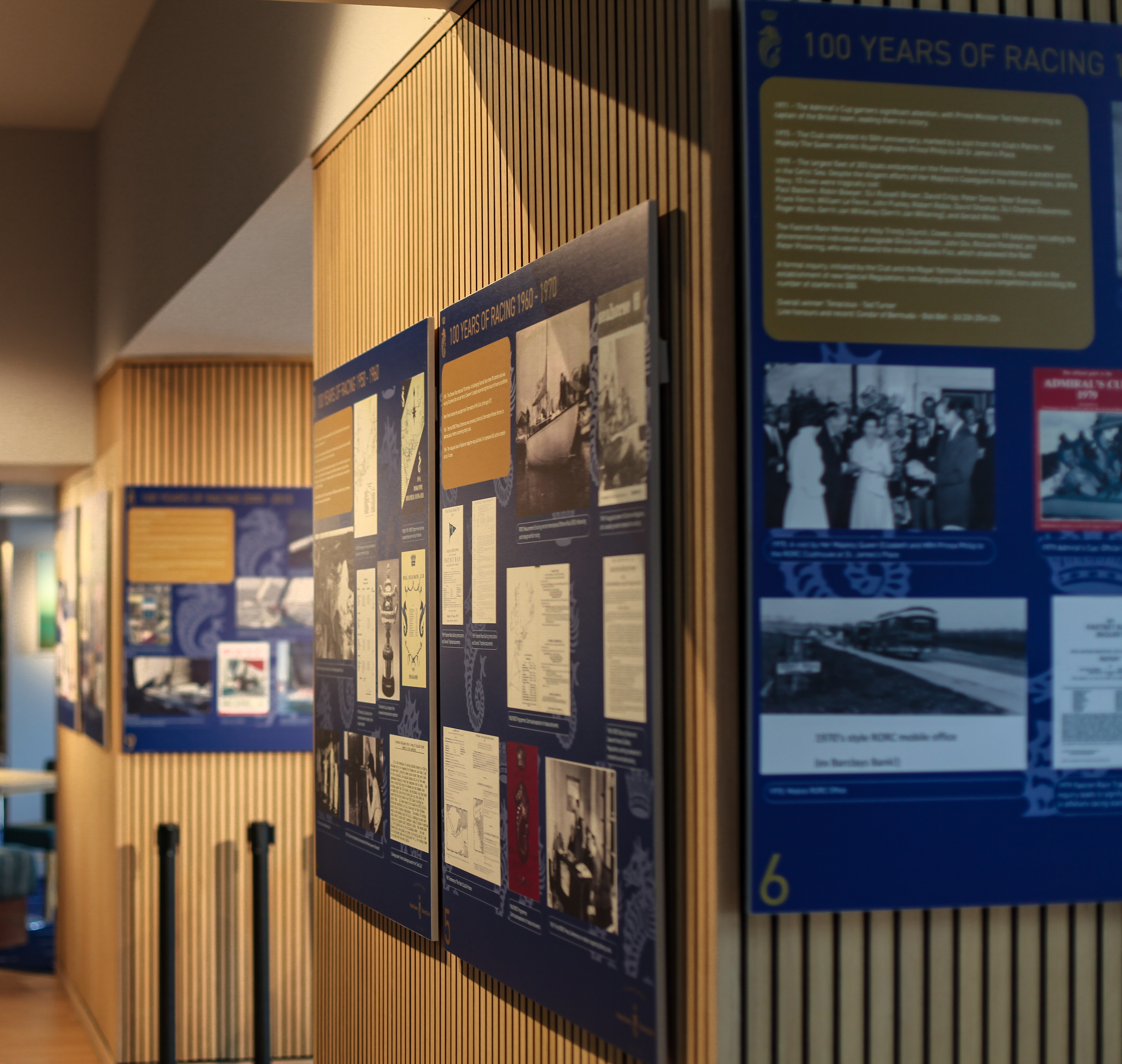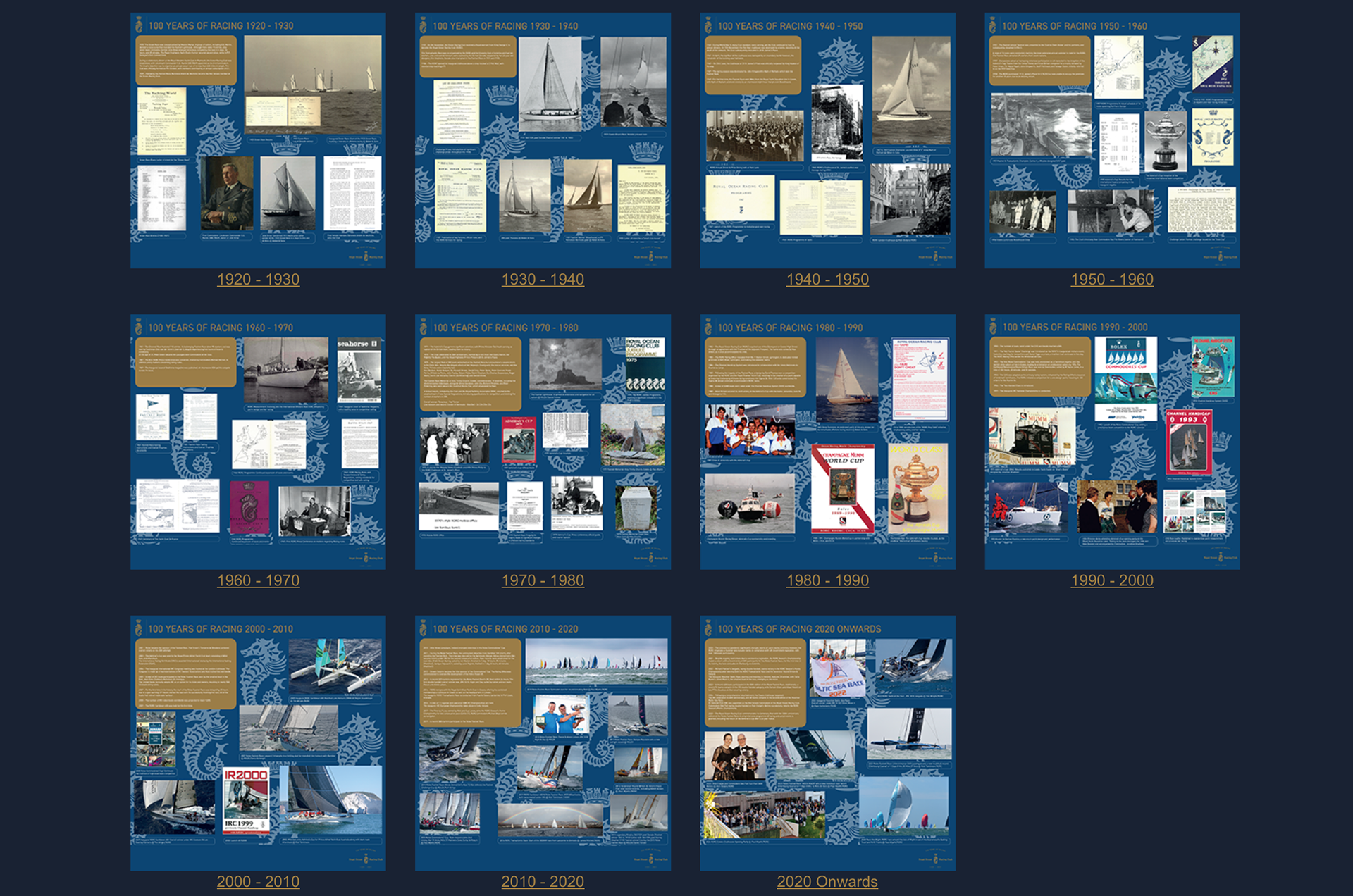 In 2025 The Royal Racing Ocean Club celebrated its centenary year, to celebrate this I worked with the RORC team to design a photographic exhibition, showcasing the history of the club through the decades. The exhibition showcases a board for each decade, highlighting important documents and photographs of famous boats and sailors; furthermore the exhibition showcases the development of the Royal Ocean Racing Club from inception to the present day. The boards were designed to highlight each decade, as well as remain consistent with RORC's branding and Centenary Branding.